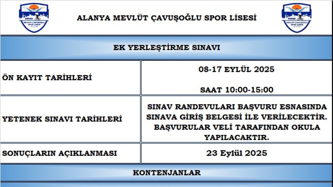 EYLÜL EK YERLEŞTİRME SINAV SONUÇLARI